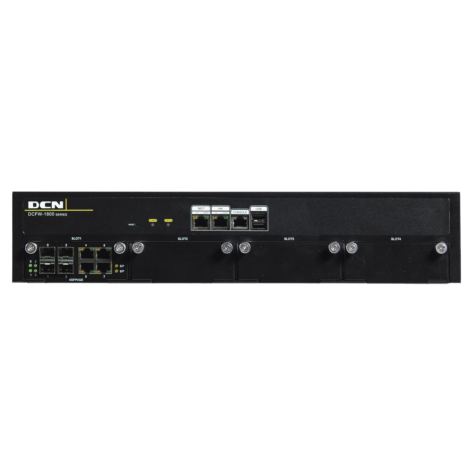 | DCFW-1800E-X8430 | DCFW-1800E-X8430 下一代防火墙。物理参数:最大可扩展至32个千兆接口,16个万兆接口。标准带4个10/100/1000M以太网电口+4个千兆SFP接口(占一个槽位),1个HA接口,1个管理口,4个Slot插槽,1T硬盘,热插拔双电源冗余设计;2U标准机箱。 |